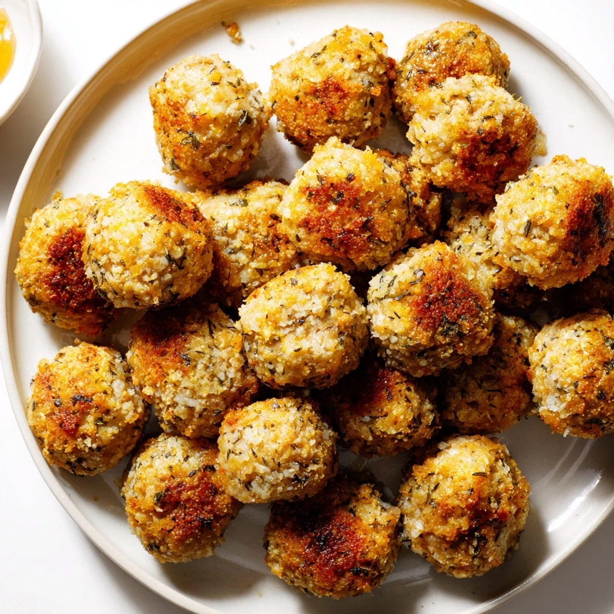 I’ve found a sharp honey-mustard dip or a dollop of cranberry sauce turns these chicken balls into party central. Even a quick yogurt dip with lemon and pepper will work in a pinch—just something cool to set off their warm, herby cores.