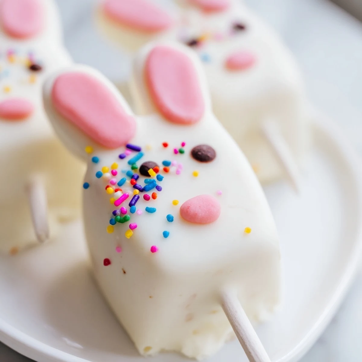 Transform vanilla cake crumbs into adorable bunny-shaped treats perfect for Easter festivities. These cakesicles combine moist cake with luscious white chocolate coating, creating irresistible handheld desserts that both kids and adults will love. The process is straightforward: mix cake with cream cheese and butter, shape into bunny faces, insert sticks, chill until firm, then dip into melted white chocolate. Decorate with candy eyes, sprinkles, or fondant ears and noses for personalized touches. Make up to 8 festive treats in just one hour, including chill time. These charming desserts are ideal for Easter baskets, party favors, or as a fun weekend baking project with family.
